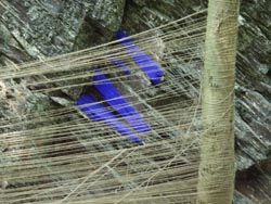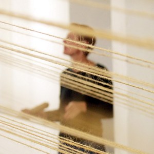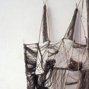 Die Drahtobjekte von A.M.Can greifen das Thema „Fadenraum“ auf und sind doch auch ein ganz eigenständiges Werk. Durch die Verwendung galvanisierter Drähte wirken die filigranen und glitzernden Gewebe kostbar wie Schmuck. Durch die Größe und Reihung der Objekte besetzen sie Raum und wirken doch wie luftige dreidimensionale Zeichnungen.