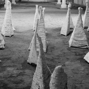 Die Idee zur Arbeit „Feldfoschung“ entstand bei der Betrachtung eines Kohlfeldes im Winter. Die einzelnen Objekte bestehen aus einem hölzernen Rahmen auf das Stoffstreifen und Fäden gewickelt sind. Die Oberfläche aus Hartputz verbindet die Schichten und schafft ein geschlossenes Erscheinungsbild der Objektserie. (mehr …)